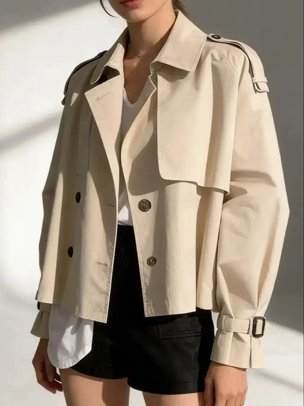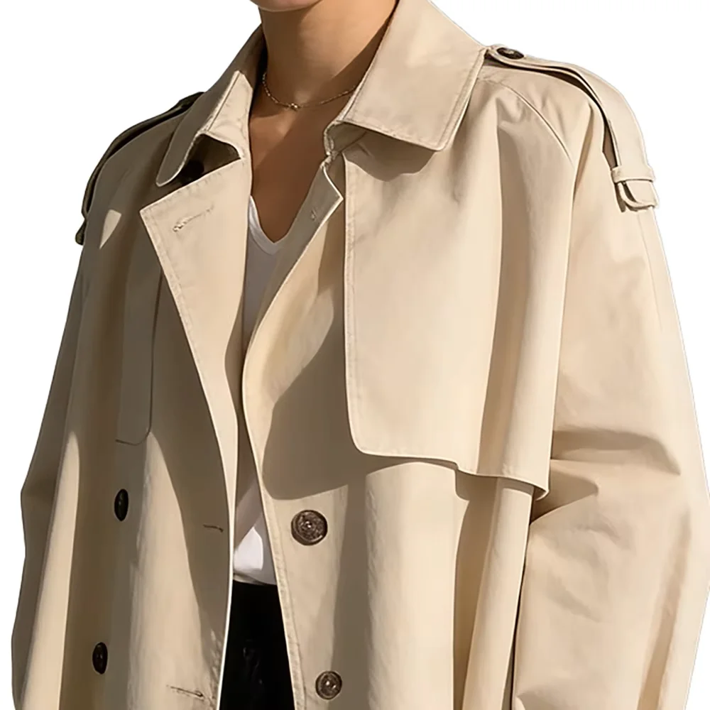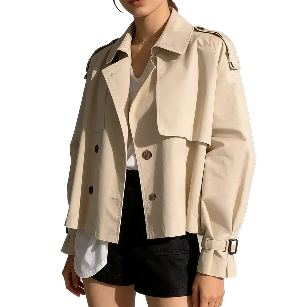 2025 Fall Women's Niche Collar Design Trench Coat – Double-Breasted, Oversized Short-Length, Long Sleeve Utility Windbreaker Jac