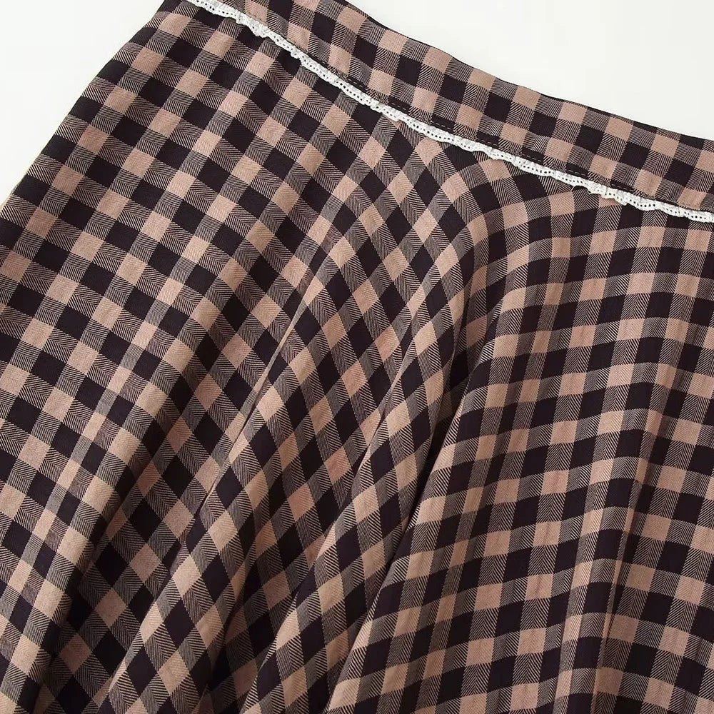 2026 new women's French casual versatile A-line hem high waist casual commuting small plaid lace skirt