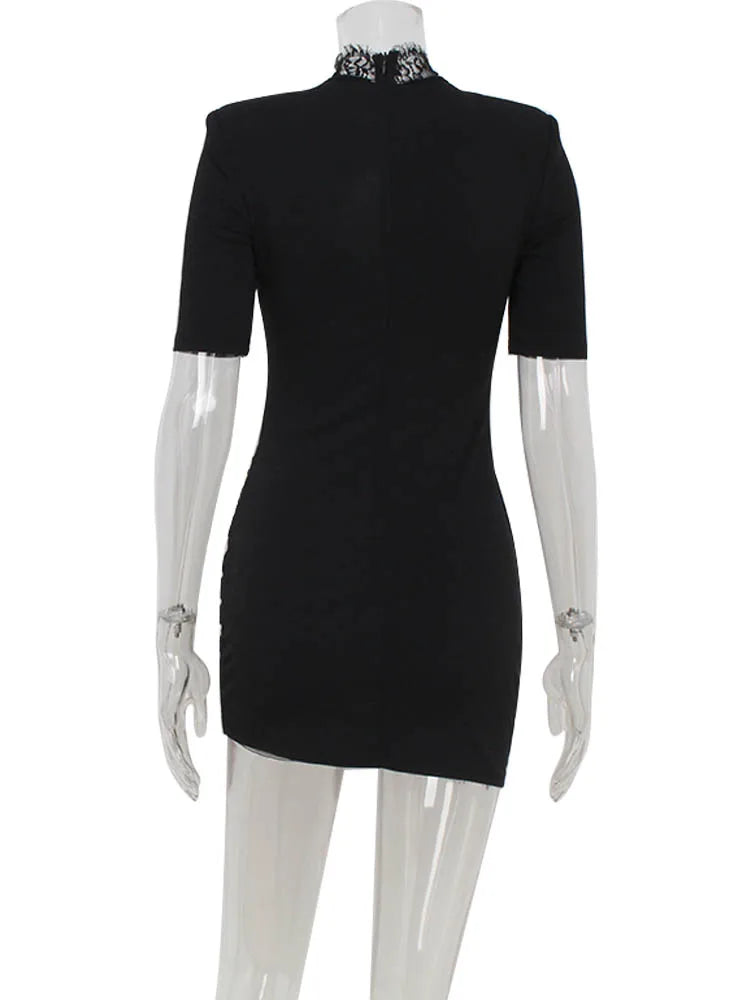 Ahagaga Sexy Sheath Women's Mini Dresses Solid Lace Turtleneck Slim Fit Bodycon Hollow Out Half Sleeves Streetwear Vestidos Robe