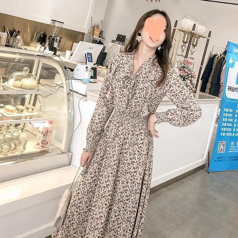Light-colored Floral Korean Silk Long Dress 2026 Autumn New Women's Fashionable Style with Super Fairy Slim French Long Skirt