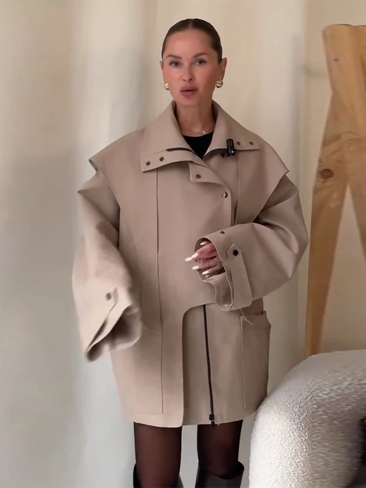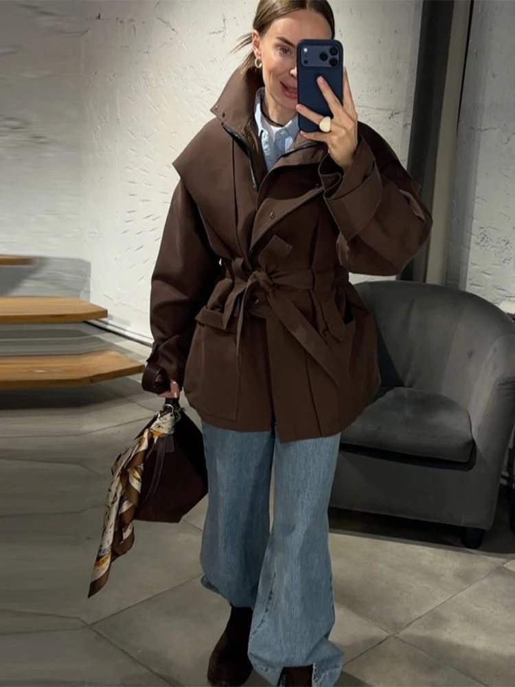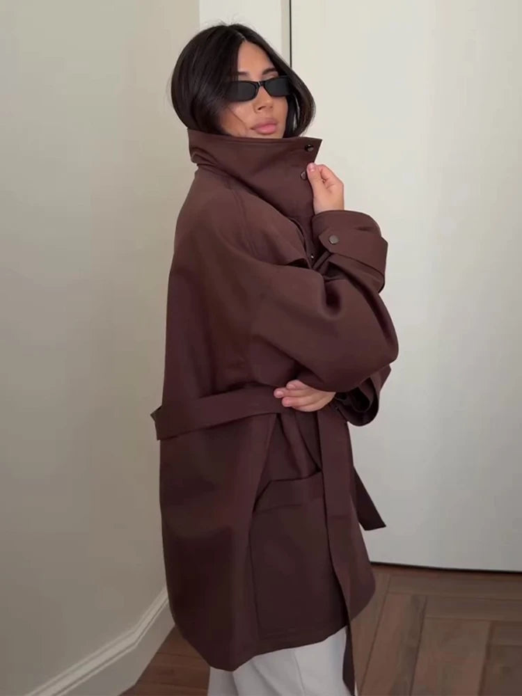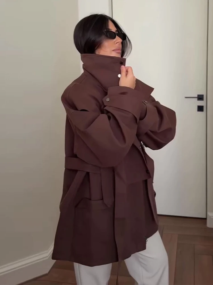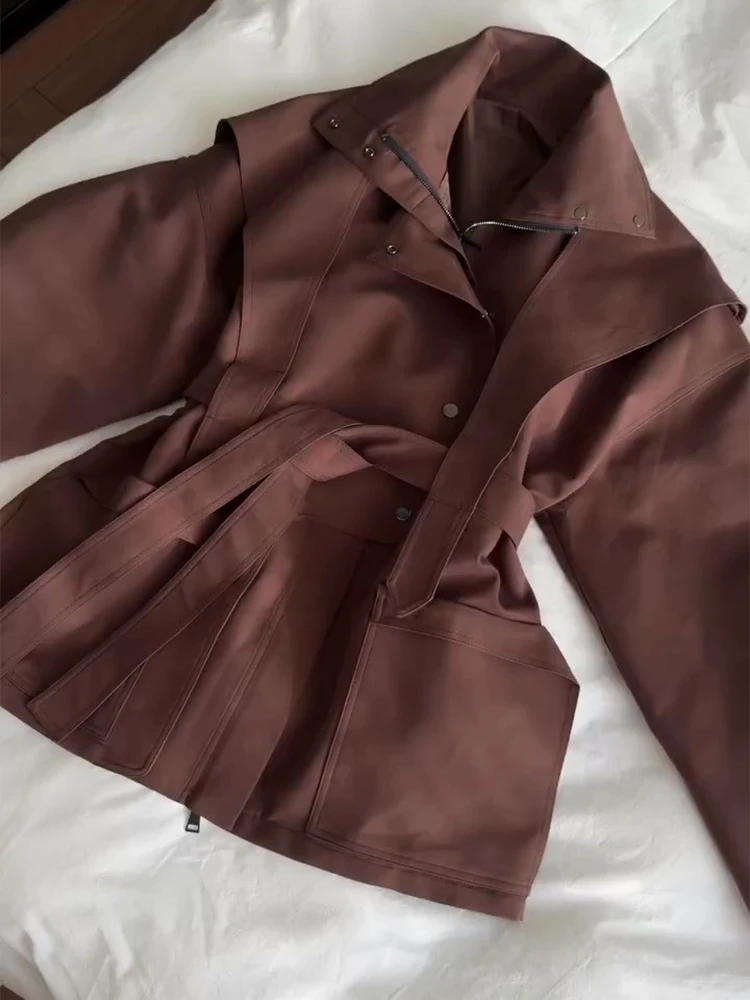 Oversized Tie-Waist Cropped Trench Coat Drop Shoulder 2026 Spring Women Modern Edgy Outerwear Fashion Chic Lady Streetwear Coat