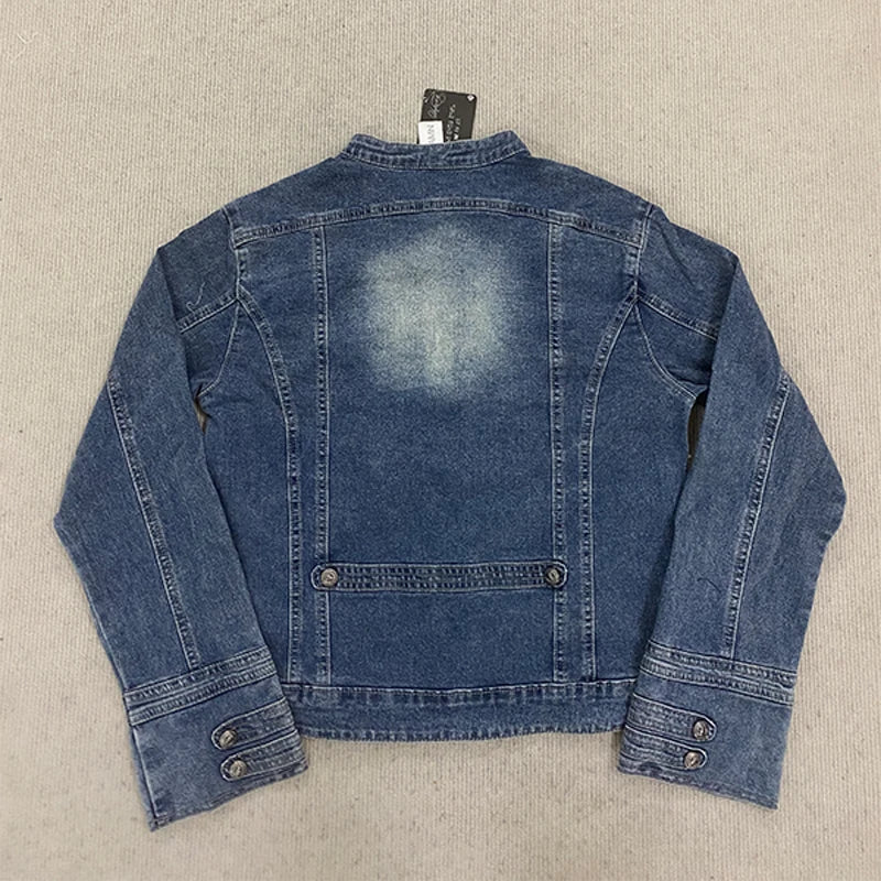 Retro Military Style Handsome Stand Collar Denim Jackets Female Double-breasted Wild Slim Short Denim Jackets Women Outerwear