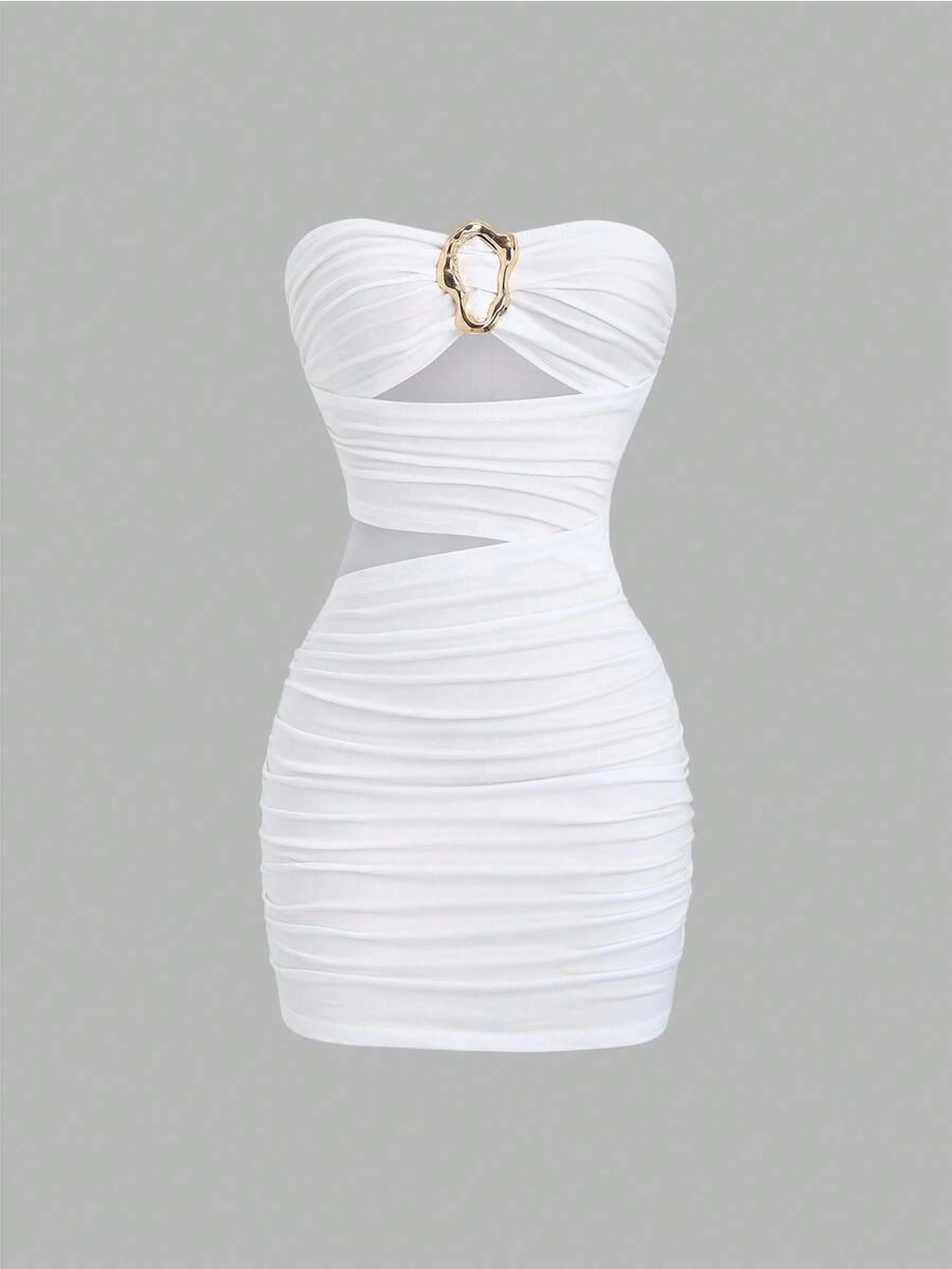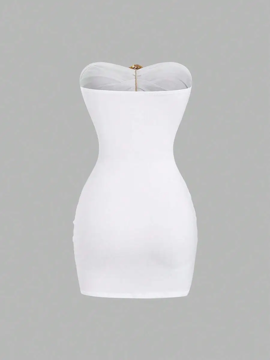 Women's Sexy Slim-Fit Strapless Bustier Mini Dress with Metal Buckle